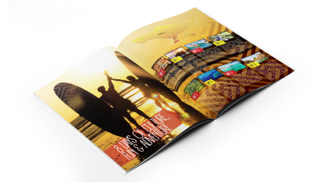 Several brochures were produced detailing destinations. The brochures were to be highly image based and engaging, yet featuring day to day itineraries and other details. Information kits were designed as a comprehensive checklist of sorts to give to customers before departure.